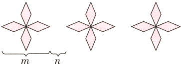 2. 李奶奶用彩纸制作一条花边(如下图),一共排列了9朵花。每朵花的宽是m厘米,每相邻两朵花之间的距离是n厘米。