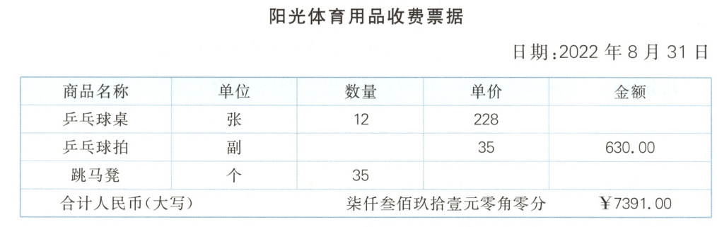 2. 请将下面的收费票据补充完整。