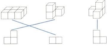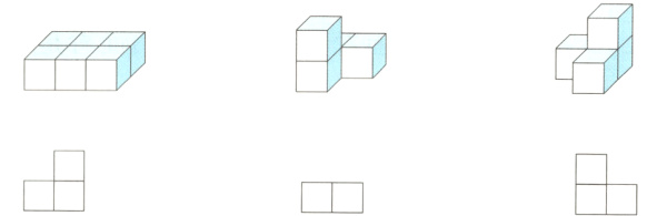 2. 下面的立体从左面看到的形状分别是什么?连一连。(6分)