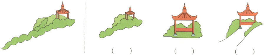 六 周末,乐乐和爸爸、妈妈一起去爬山,乐乐跑在第一,妈妈跑在最后一个,你知道下面三幅图分别是谁看到的吗?(6分)