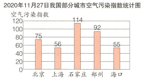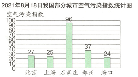 一 下面是我国部分城市2020年11月27日和2021年8月18日空气污染指数统计图。(补全统计图8分,其余每空3分,共38分)