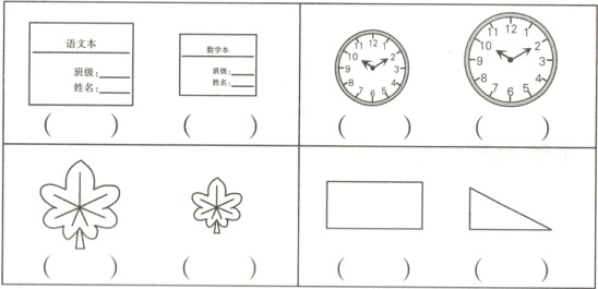 2. 比较图形的大小,在面积大的图形下面画“√”。