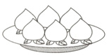 (1)把这盘桃子平均分给2个小朋友,每个小朋友分得这盘桃子的( ),每个桃子是这盘桃子的( )。