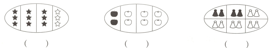 (4)一堆小棒有24根,小亮先拿了其中的$\frac{1}{6}$,他拿了( )根,接着小强拿了剩下的$\frac{1}{4}$,他拿了( )根。