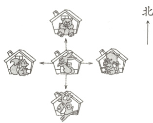 (2)小熊住在小兔的( )面,小鹿住小兔的( )面。