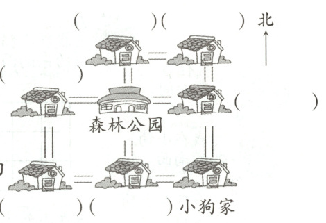 从森林公园游玩后,小兔向东走就到家了;小鹿先向西走,再向南走到家;小猴和小松鼠向北走,小松鼠先到家,小猴继续向东走到家;小羊从公园出来向西走到家;小象向南走到家。请你标出它们的家。