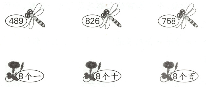 2. 下面每个数中的“8”各表示多少?你能用线连一连吗?