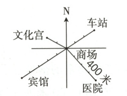 (3)文化宫在商场的北偏( )方向( )米处。