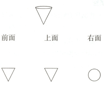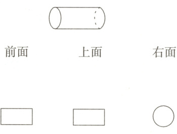 3. 从前面、上面和右面看圆柱和圆锥,看到的是什么图形?连一连。