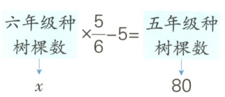 植树节当天,五年级同学种树80棵,比六年级同学种树棵数的$\frac{5}{6}$少5棵,六年级同学种树多少棵?