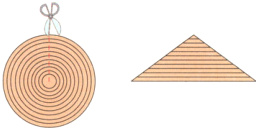 2. 这是一个由草绳编织成的圆形茶杯垫片。沿虚线剪开,形成了一个三角形,观察这个三角形,底相当于圆的( ),高相当于圆的( )。