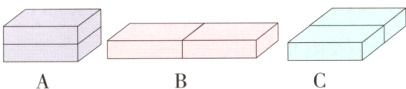 2. 青青要把两个同样的礼盒(长10厘米,宽8厘米,高3厘米)包装在一起,有如下几种包装方式。哪种包装方式最省包装纸?最少需要多少平方厘米的包装纸?(接口处忽略不计)(6分)