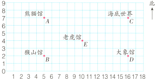 (2)海底世界在大象馆的( )面;海底世界和( )在同一行;大象馆和( )在同一行。