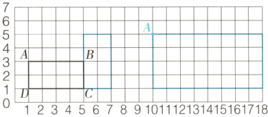 (2)将长方形按2 : 1放大,画出放大后的图形,并使点A的位置在(10,5)处,放大后的长方形的面积与原来长方形的面积比是( )。(5分)