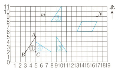 (4)画出图形①关于直线m对称的图形③。(3分)