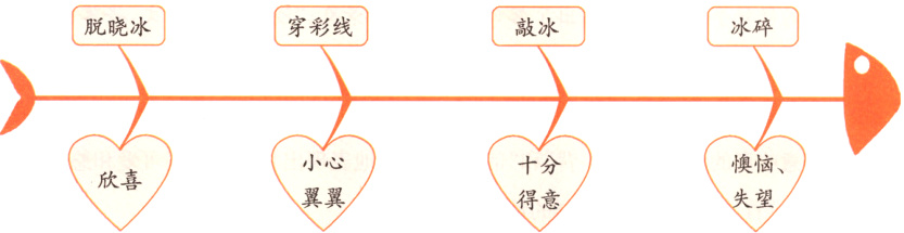 3.脱晓冰——欣喜;穿彩线——小心翼翼;敲冰——十分得意;冰碎——懊恼、失望。