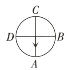 指针从A开始,( )时针旋转90度到B。指针从( )开始,顺时针旋转90度到B。
