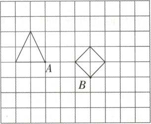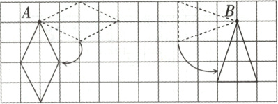 (3)下图中的平行四边形绕点A( )时针旋转了( )。三角形绕点B( )时针旋转了( )。