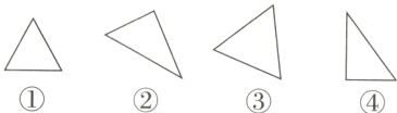 1. 下面的图形中,哪些是等腰三角形,哪些是等边三角形,将序号填在相应的圈里。