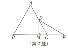 2.如图,在等边三角形ABC中,D是AC的中点,E是BC延长线上的一点,且CE=CD,DM⊥BC,垂足为M. 求证:M是BE的中点.