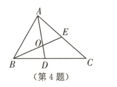 4 (2024·湖北武汉新洲区期中)如图,在△ABC中,E为AC的中点,AD平分∠BAC,BA∶CA = 3∶4,AD与BE相交于点O,若△OAE的面积比△BOD的面积大1,则△ADC的面积是( ).