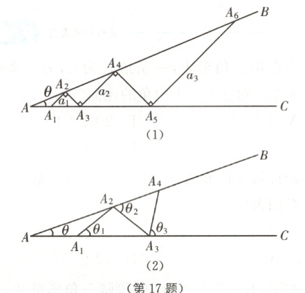 设∠BAC =θ(0°<θ<90°),现把小棒依次摆放在两射线之间,并使小棒两端分别落在射线AB,AC 上.