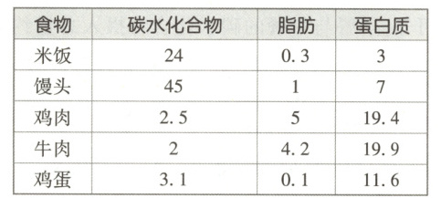 答:小明午餐鸡肉和牛肉的摄入量分别约为80克、112克。