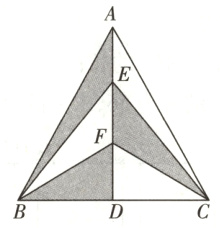 6(知识点2,3)如图,△ABC是轴对称图形,且直线AD是△ABC的对称轴,点E,F是线段AD上的任意两点,若△ABC的面积是12 cm²,则图中阴影部分的面积是______cm².
