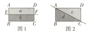在一次数学实践探究活动中,李小明同学过线段AB,CD的中点画直线EF,把长方形ABCD分割成a,b两部分(如图1),而王小刚同学过A,C两点画直线AC,把长方形ABCD分割成c,d两部分(如图2).
