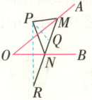 解析:因为点P关于OA的对称点Q恰好落在线段MN上,点P关于OB的对称点R恰好落在MN的延长线上,