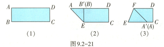 解析:如图9.2 - 22所示,将纸片展平后,根据折叠的性质,可知第一次折叠后∠EAD=$\frac{1}{2}$∠BAD=$\frac{1}{2}$×90° = 45°.