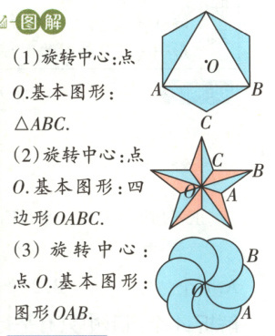中的图案是以图案的中心为旋转中心将基本图形顺时针旋转120°两次得到的.