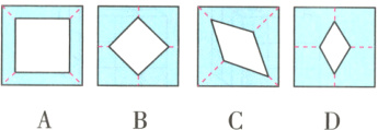 典例4 将一张正方形纸片按如图9 - 5步骤①②沿虚线对折两次,然后沿步骤③中平行于底边的虚线剪去一个角,展开铺平后的图形是 ( )