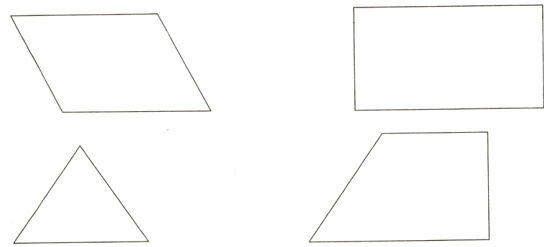 4. 分别画一条线段,把下面的各图形分成2个三角形。