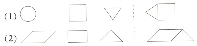 1. 下面的图案是由哪些图形拼成的?填一填。