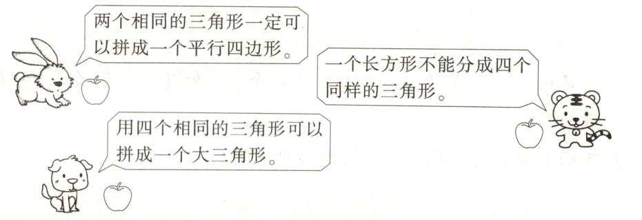 这个图案是由 ______ 个图形组成的。______ 号图形是三角形;②号图形是 ______ 形;①号图形是 ______ 形;③号图形和⑤号图形拼成了一个 ______ 形。