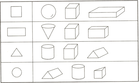 1. 用哪个物体可以画出左边的图形?请把它圈起来。