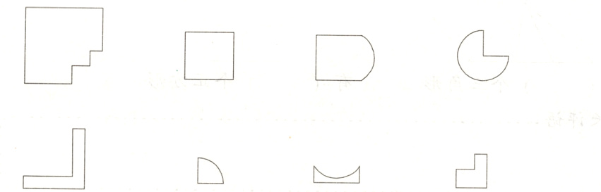 3. 哪两块可以拼成我们学过的图形?连一连。
