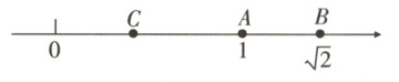 20. 辨思维 数形结合 如图所示,数轴的正半轴上有A,B,C三点,点A,B分别表示1,$\sqrt{2}$,且点B到点A的距离与点C到原点的距离相等,设点C所表示的数为$x$.【变式训练→B卷T19】
