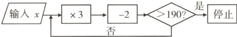 9. 辨思维 易错题(淮南期中)对一个实数$x$按如图所示的程序进行操作,规定:程序运行从“输入一个实数$x$”到“判断结果是否大于190”为一次操作,如果操作恰好进行两次停止,那么$x$的取值范围是( )