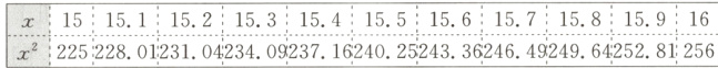 C. 根据表中数据的变化趋势,可以推断出$14.9^{2}$比225小3.01