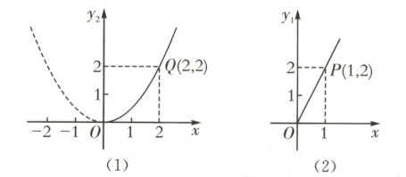 (1)设$y_{1}=kx(x\geqslant0)$,$y_{2}=ax^{2}(x\geqslant0)$.
