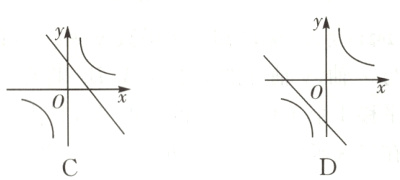3. (2024·济宁微山二模)已知二次函数$y = ax^{2}+bx + c$的图象在平面直角坐标系中的位置如图所示,则一次函数$y = ax - b$与反比例函数$y=\frac{c}{x}$的图象在同一平面直角坐标系中的位置大致是( ).