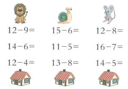 [提示]右边的三种方法分别是“想加算减”法、“平十法”和“破十法”,据此与对应的小棒图相连即可。