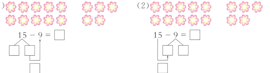 $14 - 8 = 6$(个) $6 - 1 = 5$(个)