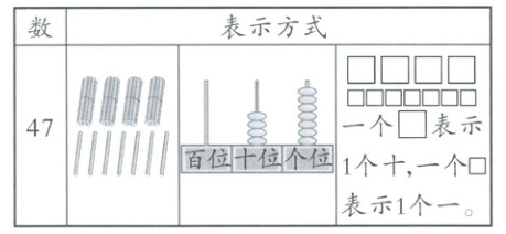 5. 新考法 数字探究 我们已经学习了用不同的方式来表示数,比如小棒、计数器等。如下图,小卓用3种不同的方式表示35。请你发挥想象,用自己的方式表示47。