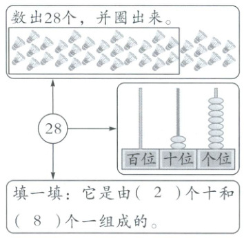 一共有( )根小棒,表示( )个十和( )个一。再添上1根是( ),表示( )个十。