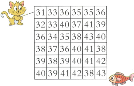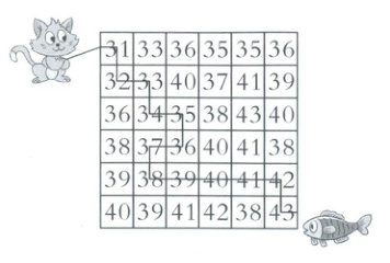 4. 小猫钓鱼,从31起按数的顺序走下去,请你帮小猫把路线画出来。(每个数只能走一次)