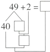 想:把49分成( )和( ),先算( )加( )得( ),再算( )加( )得( )。
