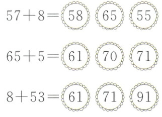 [提示]把58分成50和8,先算8加4等于12,再算50加12等于62,据此填空即可。